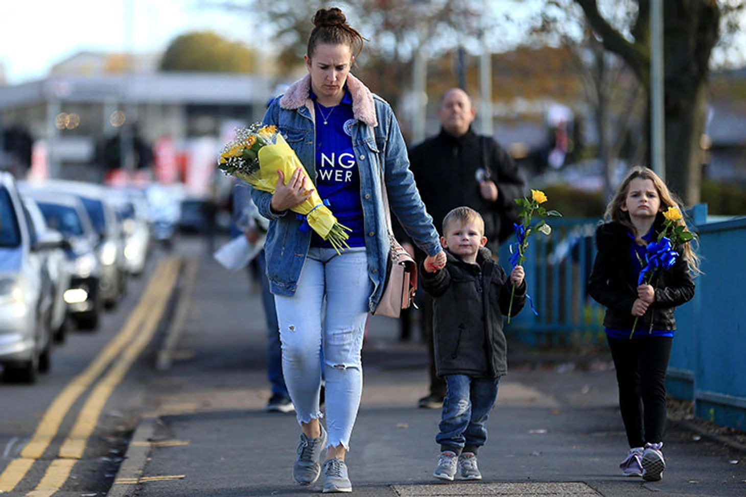 К «Кинг Пауэр» несли не только цветы. На ограждения вешали снятые с шеи шарфы и флаги, на земле аккуратно раскладывали футболки всех клубов Европы – и всех эпох лестерской истории. Болельщики нежно поправляли уголки маек, клали рядом букет или ставили свечку и на минуту замирали. Дети на прощанье обнимали мягкие игрушки и оставляли рядом. Один мальчик возложил цветы с родителями, отошел на десять метров, но вдруг остановился, подбежал обратно и положил на флаг снятую с головы шапку в виде клубного маскота.