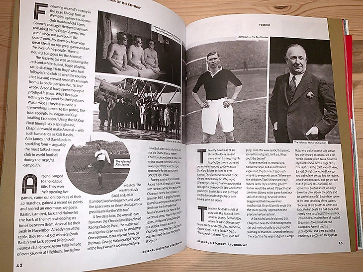 Внутри каждой программки есть специальная секция на 10 страниц с историческими вставками из того сезона, из которого взята обложка: статистика «Арсенала», состав команды и несколько интересных фактов об эпохе.