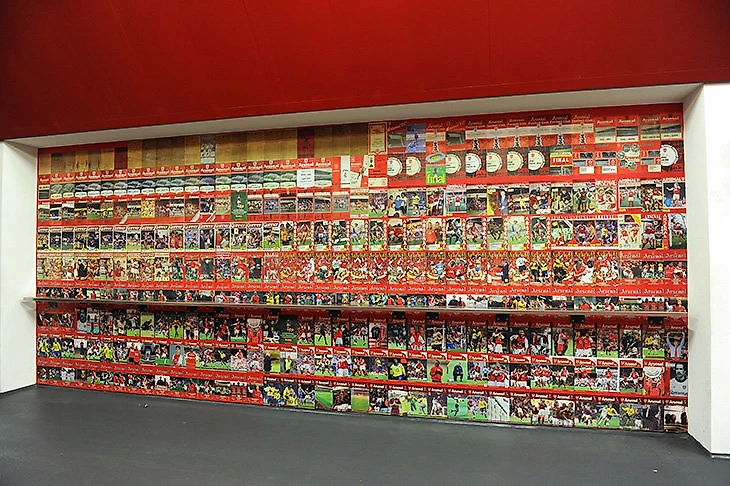 Стена на стадиона «Эмирейтс» с обложками всех программок (доступно в большом размере)