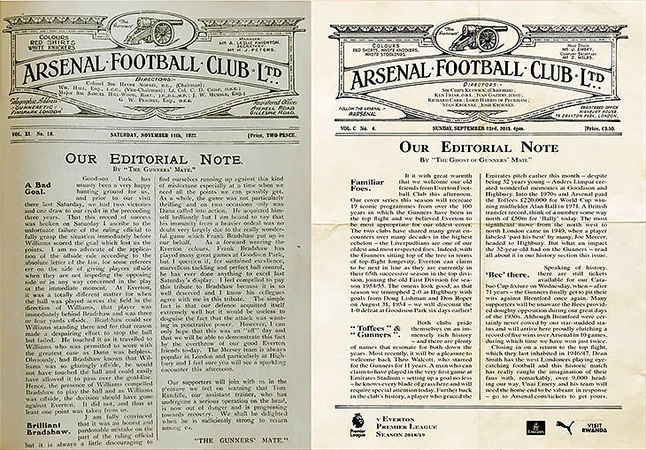 «Эвертон» был первым, кто выпускал программки на постоянной основе, а «Астон Вилла» в начале XX века добавила к составам новости клубов, комментарии игроков и статистику, превратив брошюру в журнал The Villa News and Record (с огромной рекламной вставкой на обложке).