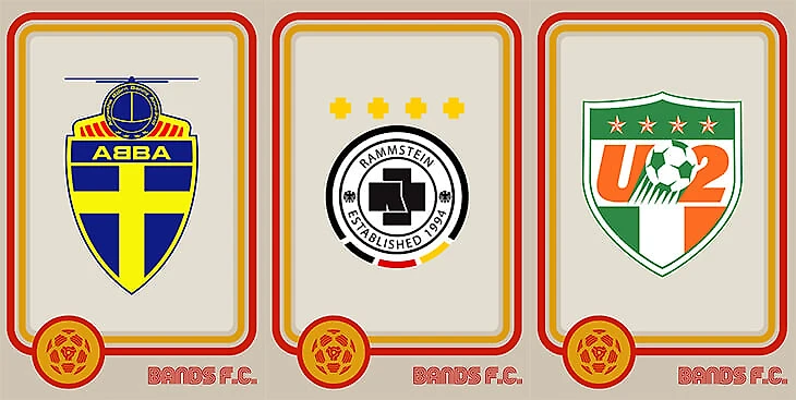 Это проект под названием Bands FC, придуманный двумя приятелями из Манчестера. Год назад они решили объединить две главные британские страсти – музыку и футбол – и создали несколько сотен логотипов, в которых переплетаются эмблемы футбольных команд и названия или песни музыкальных групп.