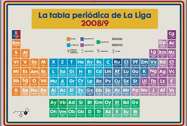 Еще одна мощная идея затронула таблицу Менделеева: «Мы как-то вспомнили про нее и подумали: на ней много клеточек, все элементы помнят только химики, но визуально выделяется одна – это H, водород. Одна клеточка, стоящая выше всех и как бы отдельно. Она вроде как лучше всех – конечно же, это чемпион. Дальше идея понеслась стремительно: все остальное можно поделить на дивизионы, внутри них тоже можно красить команды-элементы в разные цвета: где выход наверх, где вылет из лиги. Здесь куча информации.