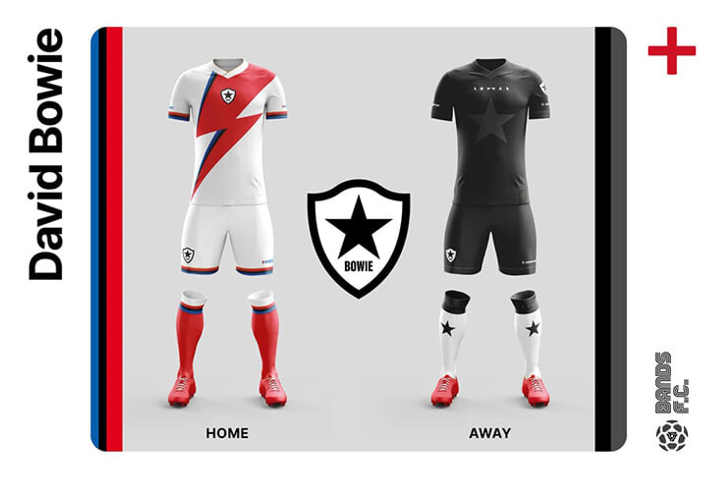 Еще один проект формы посвящен Дэвиду Боуи: «Логотип мы адаптировали с эмблемы бразильской команды «Ботафого». Мы изначально не хотели что-то аляпистое и яркое, так что взяли их пятиконечную звезду и перевернули щит, ведь у Боуи есть альбом Blackstar. Кстати, дизайнер, который сделал обложку, Джонатан Барнбрук, тоже вышел на связь! Хотя часто многие в мире дизайна начинают ругаться, если берешься переделывать их работы.