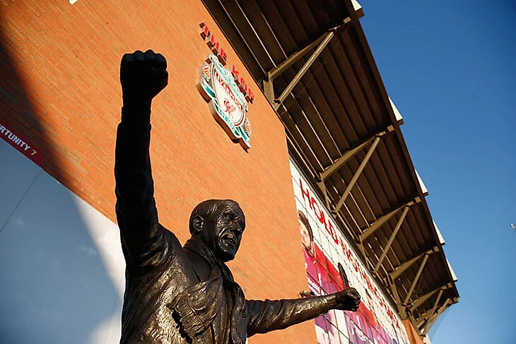 Рядом – статуя Билла Шенкли, легендарного тренера «Ливерпуля» 1950-1970-х.