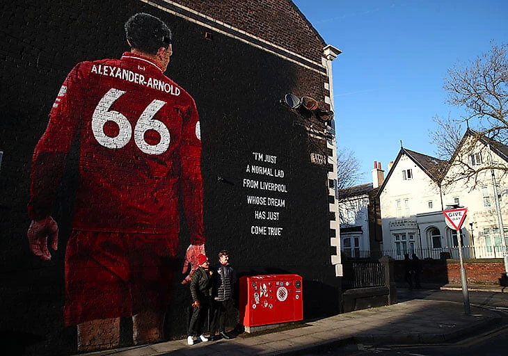 А если отойти чуть дальше от стадиона по Anfield road, наткнетесь на граффити Трента Александер-Арнольда.