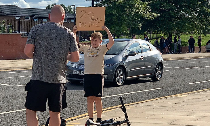 Единственным радостным фанатом «МЮ» в радиусе «Этихада» оказался подросток на велосипеде. Он долго катался туда-сюда мимо пары десятков толпящихся у входа болельщиков «Сити», в затем в сторонке сфотографировался на их фоне с табличкой 20 time’s MUFC – чант фанатов «Юнайтед», напоминающий о 20 чемпионствах.