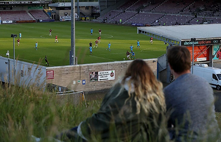 Настоящим спасением стали старые стадионы с раздельными трибунами. На стадионе «Оксфорд Юнайтед» вообще нет одной из трибун, так что зрители пришли со своими стремянками...