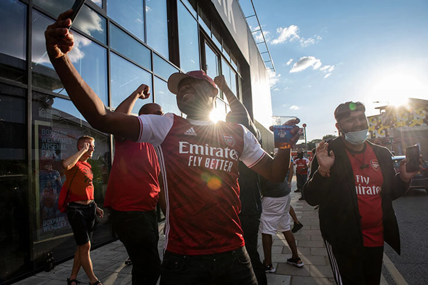 Болельщики «Арсенала» празднуют победу в Суперкубке возле «Уэмбли».