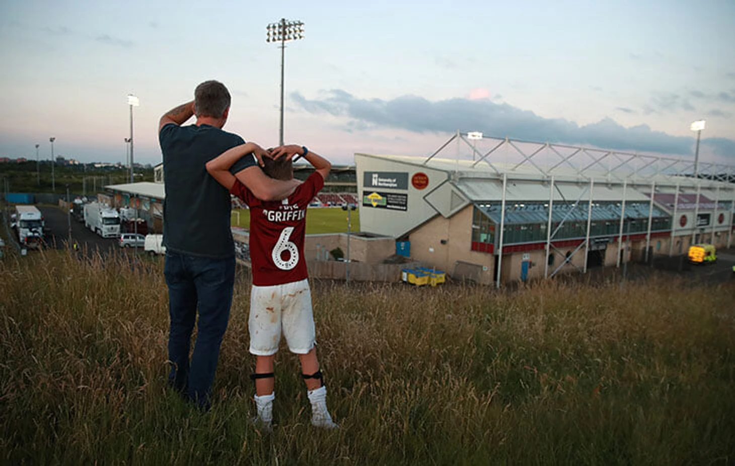 В центральной Англии тоже отличный вид на поле с близлежащего холма. Плей-офф Лиги 2 между «Норхэмптоном» и «Челтенхэмом»