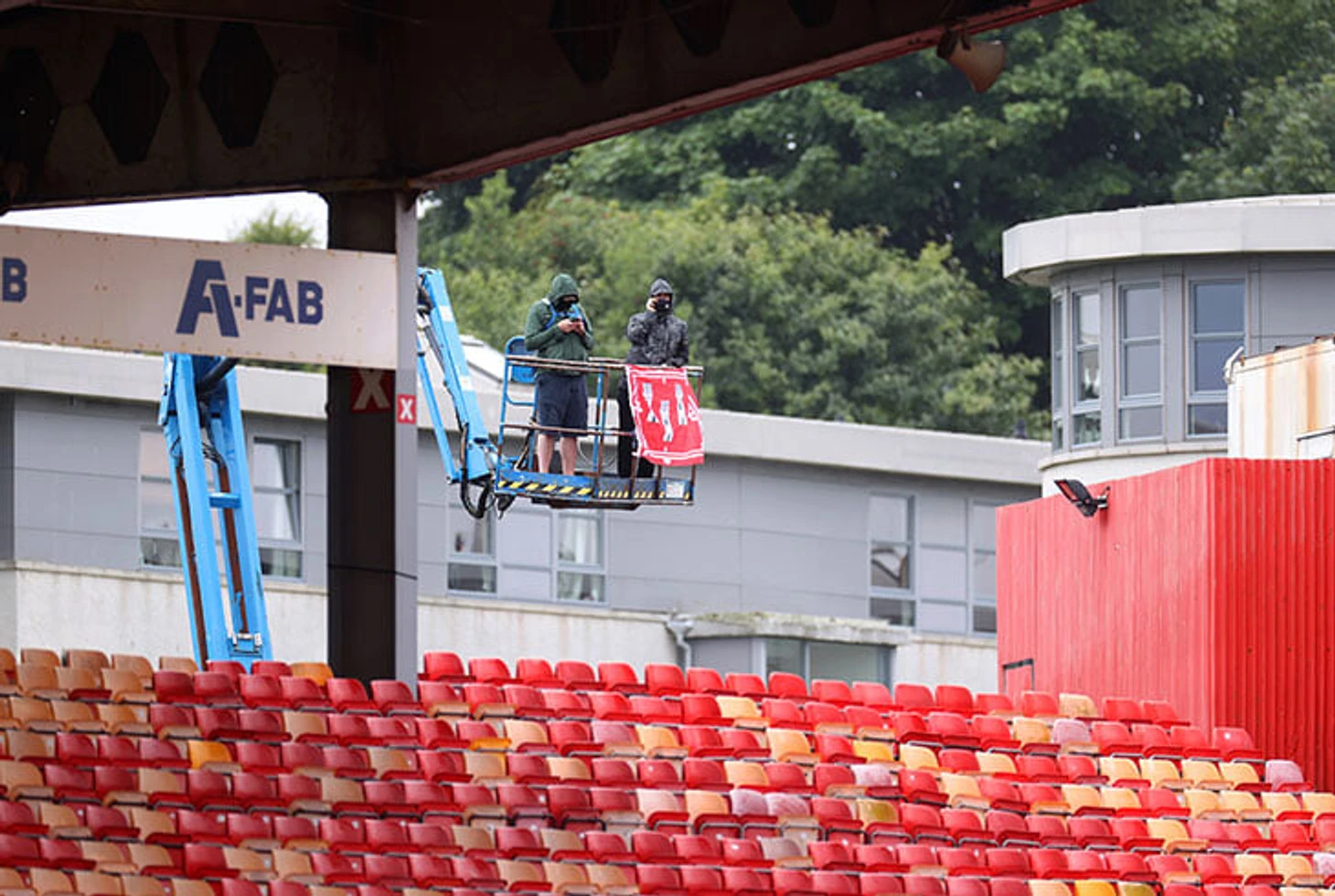 В Шотландии болельщики «Абердина» на матч с «Рейнджерс» арендовали подъемный кран.