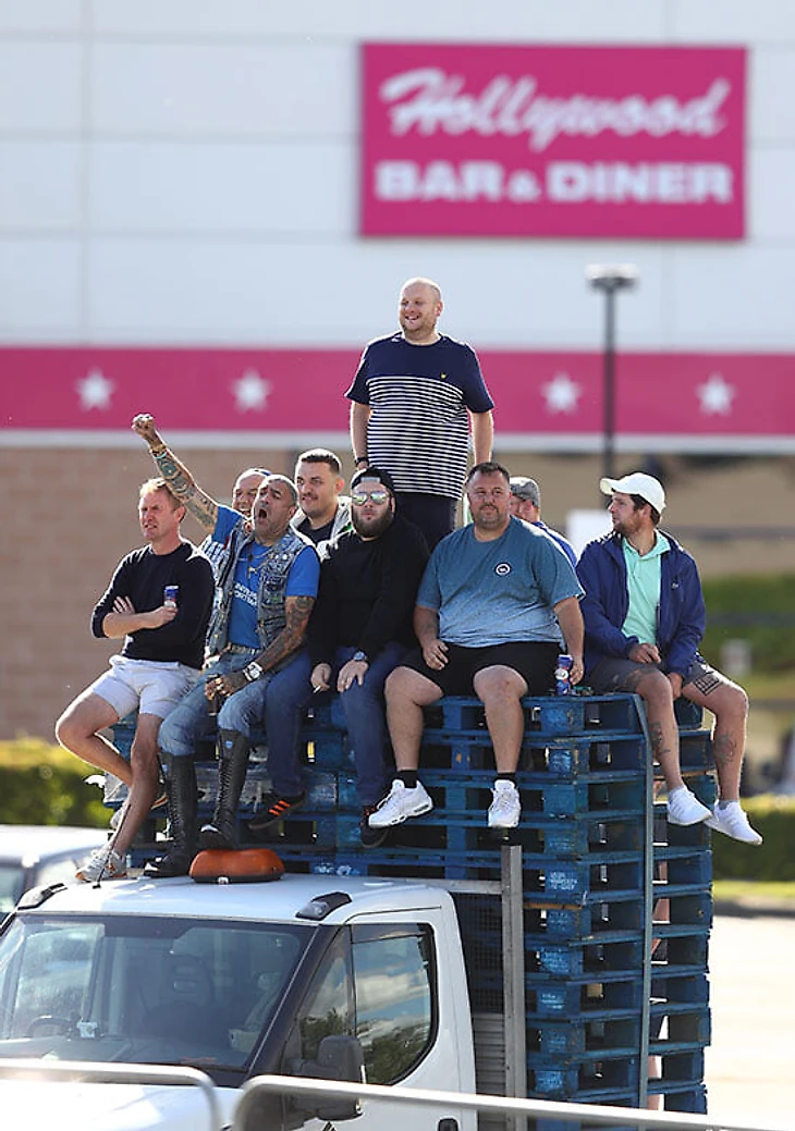 Фанатов не пускают на матчи АПЛ, но они все равно собираются у стадионов, смотрят игры с балконов и подъемных кранов. И ходят на нон-лигу