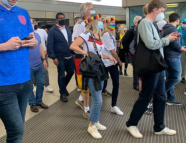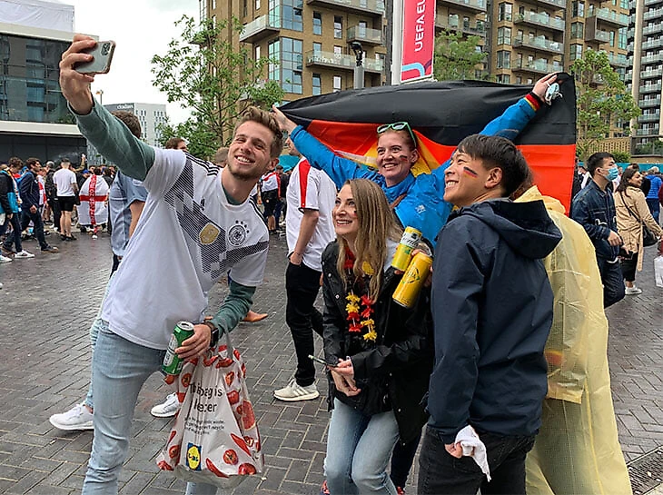 Немцев в толпе было крошечное меньшинство. Почти все они живут в Англии – из-за все еще действующих карантинных правил приехать в Англию специально на матч было почти нереально.