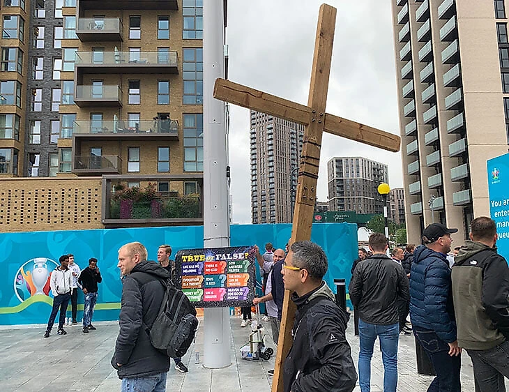 Во всеобщем ликовании внезапно обнаружились религиозные проповедники, которые перемещались у входа на «Уэмбли» с огромным крестом, в майках сборной и с тематическими речами: «Кто сегодня победит: Англия или Германия? Это очень важный вопрос, но еще важнее, куда мы все попадем после смерти?!»