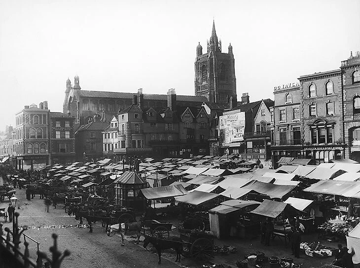 В Средние Века благодаря многочисленным пастбищам вокруг города Норвич зарабатывал на производстве шерсти. Торговля велась со странами от Скандинавии до Испании, и зажиточность города позволяла заниматься новым строительством. Так в Норвиче до сих пор больше средневековых церквей, чем в любом другом городе Западной Европы к северу от Альпийских гор.