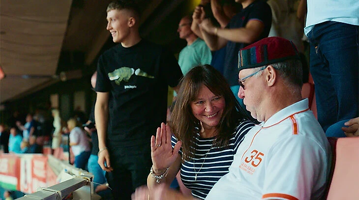 Перед матчем с «Норвичем» в ложе родители безумно радуются за сына.