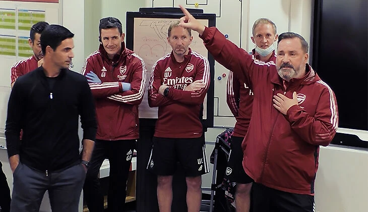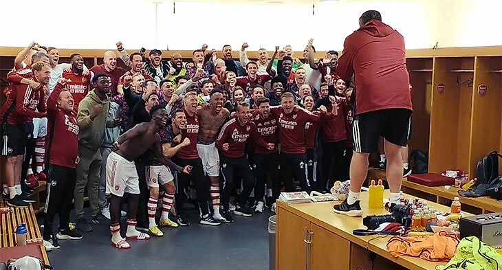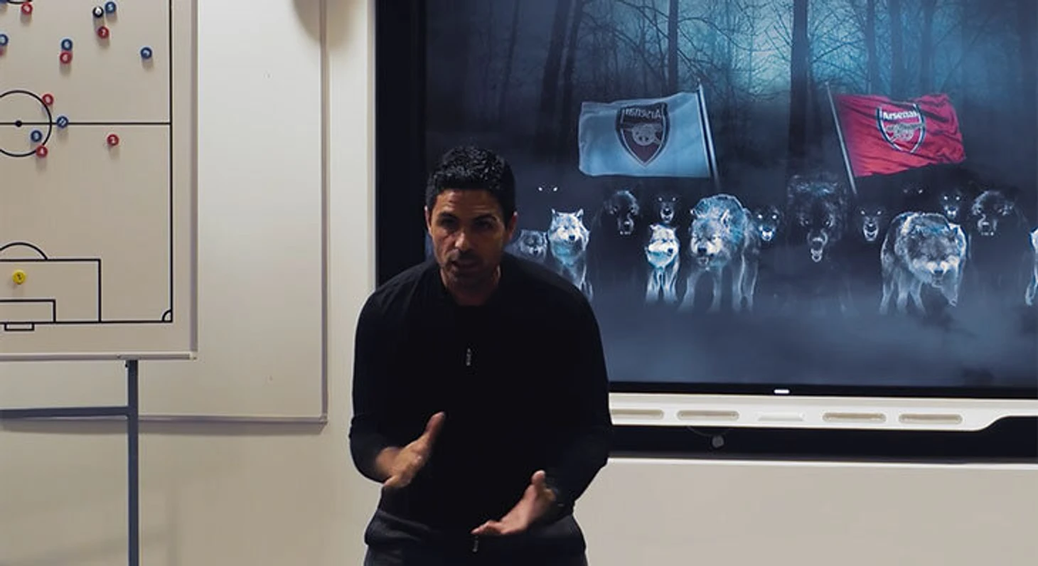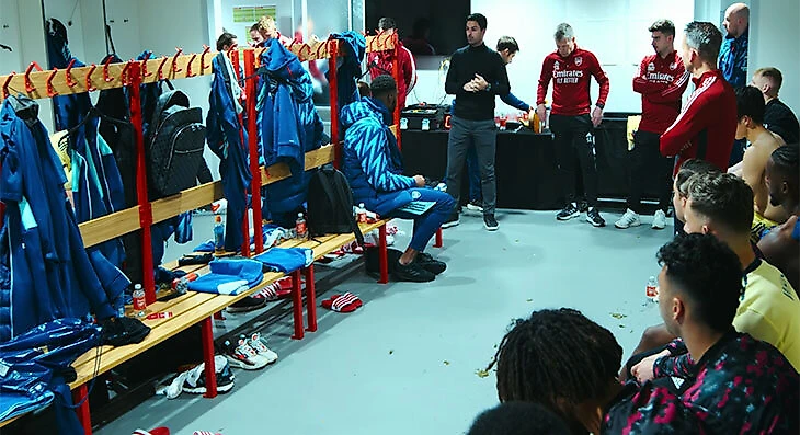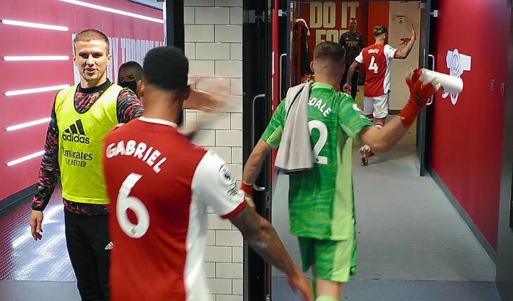 Перед выходом на поле игроков настраивал фотограф команды Стюарт Макфарлейн. «Этот человек 30 лет ловил ваши эмоции. Людей, эмоции и команды. Я хочу, чтобы вы услышали, что он думает о вас, потому что он наблюдает за вами каждый день», – дал ему слово Артета.