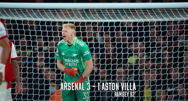 Эмоциональность Рэмсдейла сразу впечатлила фанатов, и All or Northing показали еще одну его грань. В октябрьском матче против «Астон Виллы» «Арсенал» уверенно вел 3:0, пока на 82-й минуте 20-летний Джейкоб Рэмзи не отправил мяч в девятку.