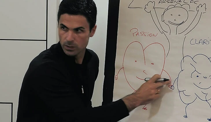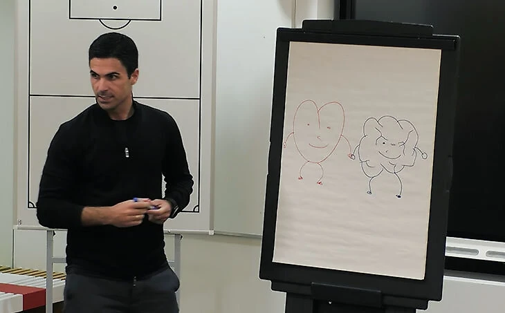 Сразу же после выхода сериала по соцсетям разлетелась картинка с доской Артеты в раздевалке, на которой он нарисовал держащиеся за руки сердечко и мозг.