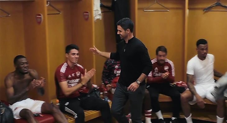 Кажется, на гостевых матчах на старте сезона съемочную группу не пускали в раздевалки: установок на матчах с «Брентфордом» и «Сити» в сериале нет. Зато после поражения в Манчестере, когда «Арсенал» оказался на последней строчке в таблице, Артета рефлексировал на базе: