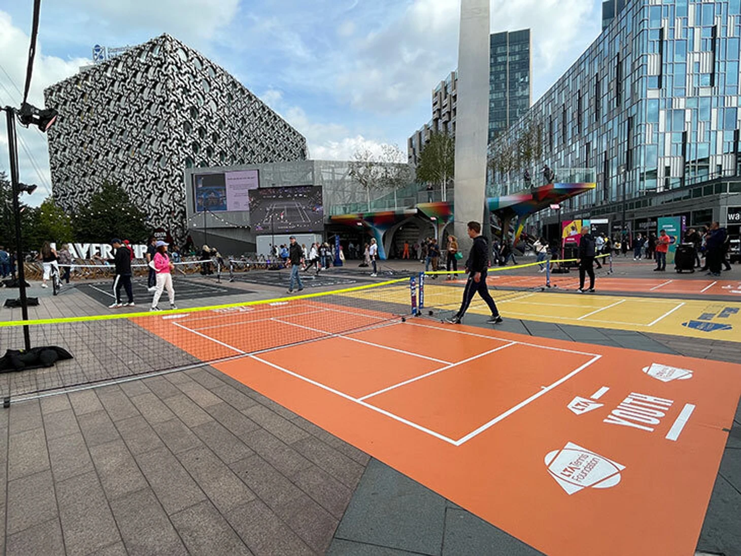 Лондонский O2 – это многопрофильный комплекс, в котором с одинаковой регулярностью проходят и турниры MMA, и музыкальные концерты, но теннис здесь смотрится особенно удачно. Арена находится в 3 минутах ходьбы от станции метро, и перед Кубком Лэйвера эту пешеходную площадь превратили в фан-зону.