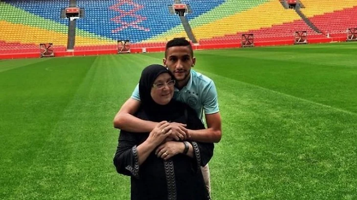 Женщина в хиджабе, мама Хакима, (у семьи Зиеха арабские и африканские корни) также говорит с экрана очень теплые слова. На заднем фоне виднеется фотография, на которой сын обнимает маму на футбольном поле.