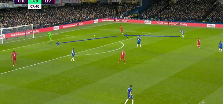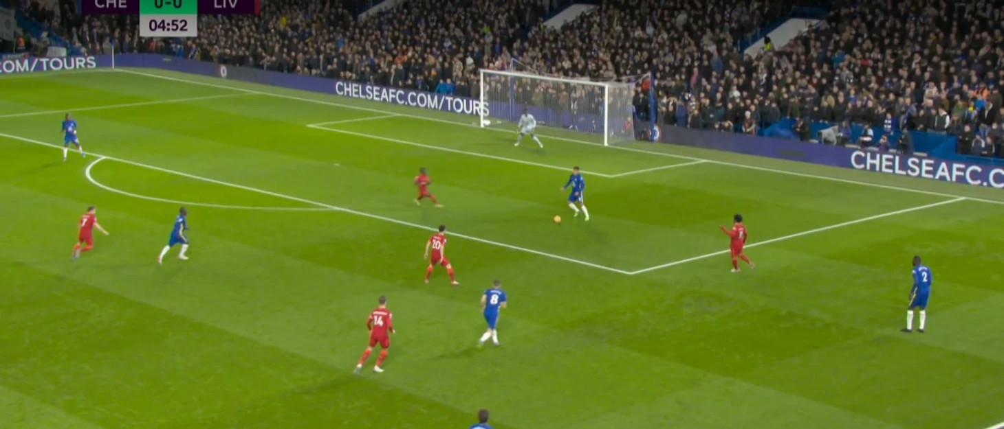 Один из источников опасности, помимо инвидидуальных перфомансов, были контратаки. К примеру, когда Салах убежал от защиты Челси, но не смог отдать точную передачу на партнера, мяч выбили точно на Алонсо: