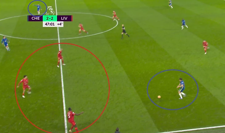 У «Челси» было не так много вариантов, как выходить из невероятного прессинга «Ливерпуля», который, впрочем, при отсутствии важнейших игроков, да и в целом оптимального состава, периодически сбоил.