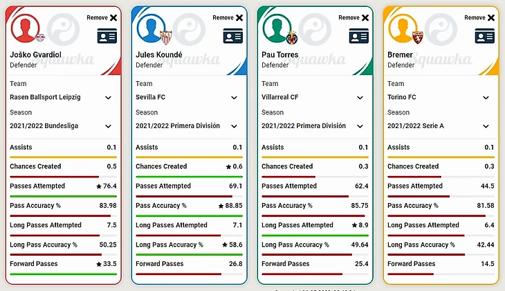 Центральные защитники на текущее ТО. Большое сравнение: Йошко Гвардиол — Жуль Кунде — Пау Торрес — Бремер