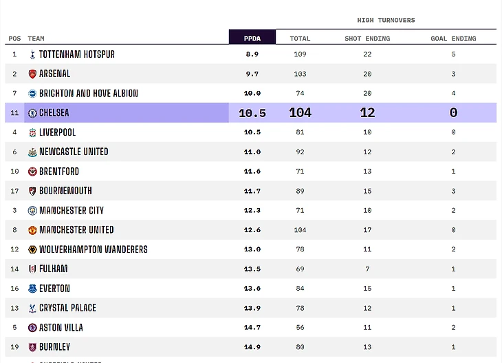 Энцо Фернандес собрал наибольшее количество действий по контрпрессингу – 21.