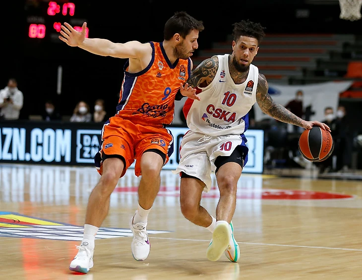 Четвертая десятиминутка началась с попадания Стрелниекса: латыш исполнил сложный бросок со средней дистанции одновременно с сиреной – и попал. На этом удачные действия армейцев в нападении закончились, и в последующие две с половиной минуты испанцы едва не отправили именитых гостей во второй нокаут: рывок Валенсии 8-0 завершил Дубльевич, забивший с фолом (72-65).
