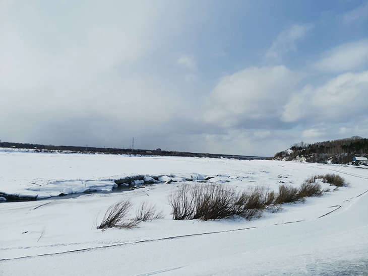 Анастасия Мурашкина: «На маршруте очень красиво! Особенно запомнились ледяные торосы (глыбы на реке – Спортс’’). На следующий день я специально вернулась на набережную Томи, чтобы найти это место и запечатлеть их на фото».