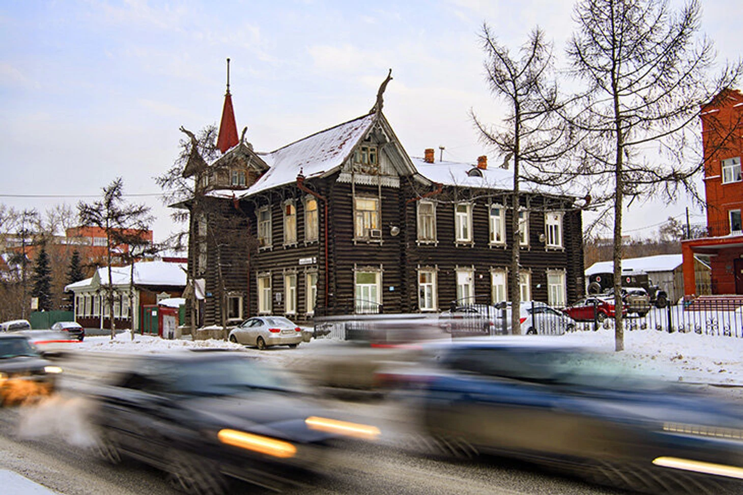 2. Дом с драконами. Деревянный особняк с атмосферой сказки про Змея-Горыныча. Здание было построено в 1917 году по проекту архитектора Викентия Оржешко. Оно объединяет черты модернизма и скандинавского стиля, делая особняк уникальным памятником сибирского зодчества.
