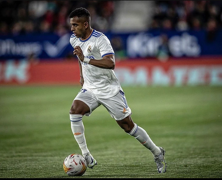 • Рисунок игры прояснился ещё в первые минуты матча: Реал Мадрид атакует, Осасуна создаёт попытки контратак за счёт выхода через проходы Чими Авилы и забросы на Будимира. Несмотря на отсутствие с первых минут на поле Винисиуса, у Реала был очевиден перекос на левый фланг атаки. 45% атак сливочных прошли именно через этот фланг. Родриго сохраняет свою потрясающую форму, по ходу матча даже не было заметно каких-либо изменений - те же успешные обводки, обостряющие передачи, уничтожение правого защитника оппонента. Всего же бразилец совершил 3 успешных попытки дриблинга, заработал 2 пенальти, отдал 4 передачи под удар. Абсолютно топовый перформанс от Родриго, радует, что у него одинаково успешно получается выходить на обоих флангах атаки, давая разнообразие тактическим замыслам тренерского штаба.
