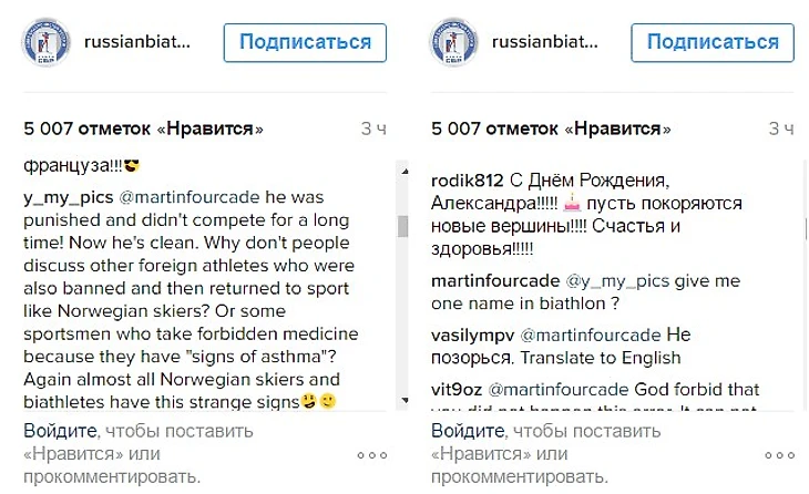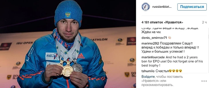 "Он был наказан и не соревновался в течение длительного периода. Теперь он чист. Почему люди не обсуждают иностранных спортсменов, которые тоже были дисквалифицированы, а затем вернулись. Например, норвежские лыжники. Или некоторые спортсмены принимают запрещенные лекарства, потому что у них есть "признаки астмы". И вновь почти все норвежские лыжники и биатлонисты имеют эти странные признаки"