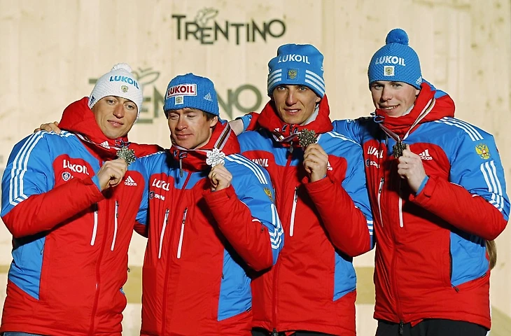 Последняя медаль России в мужской эстафете на чемпионате мира была завоевана в 2013 году в Валь-ди-Фьемме. Бронзу завоевали Сергей Устюгов и отстраненные от чемпионата мира этого года Евгений Белов, Максим Вылегжанин, и Александр Легков.