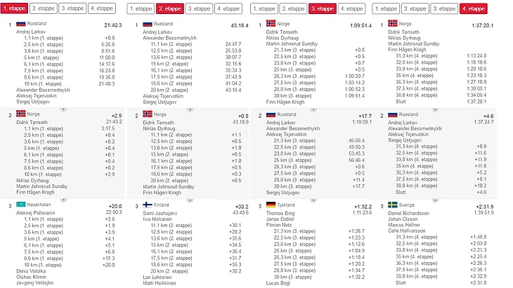 Каждый из норвежской четверки сегодня стал двукратным чемпионом мира. Мартин Сундбю завоевывал золото в составе эстафеты на ЧМ-2011 года, Никлас Дюрхауг и Дидрик Тонсет — в составе эстафеты на ЧМ-2015 года, а Финн Хоген Крог — в командном спринте на ЧМ-2015 года.