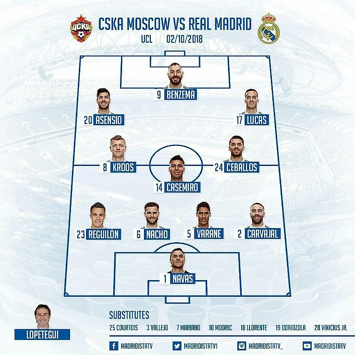 Из-за травмы матч пропускали Марсело, Рамос, Бэйл и Иско. Многие в поражении винят недооценку соперника, но по составу, который появился на поле, речи о недооценки быть не может. Единственный игрок стартового состава, который приехал в Москву, но не вышел в старте – Модрич.