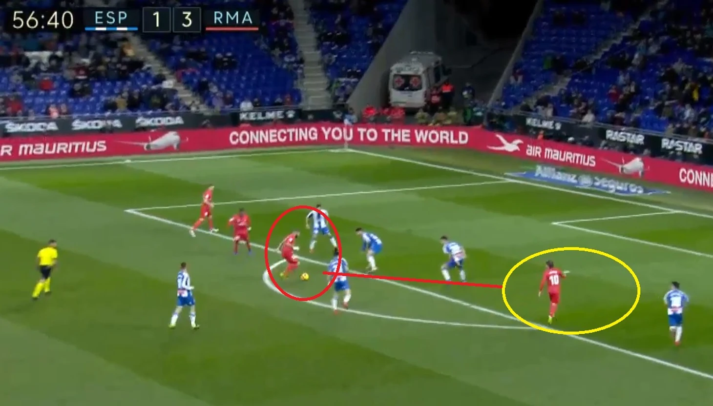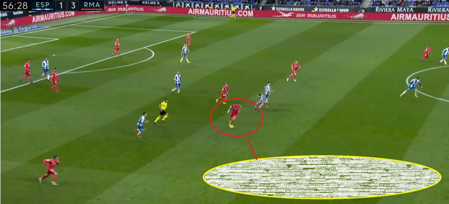 Затем была быстрая контратака Эспаньола, удаление Варана, и перестроение Мадрида.