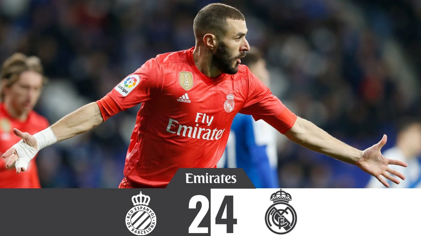 Мадрид на выезде обыграл Эспаньол со счетом 2-4, дублем отметился Карим Бензема. Также голы на свой счет записали Рамос, который забил во втором матче подряд, и Бэйл, который отличился через 2 минуты после выхода на замену.