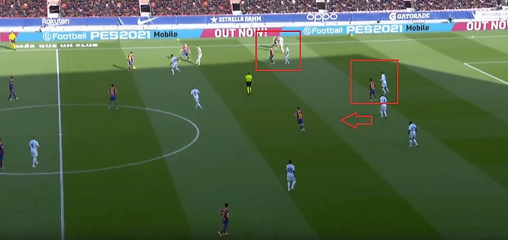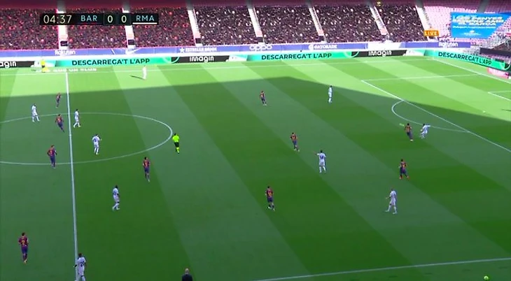 Все защитники находятся рядом со своими игроками. Только Варан немного глубоко располагается, и дает глубину атаке Барселоны.