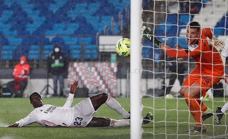 У него есть вариант покатить низом на Асенсио, который врывается на ближнюю штангу и уже опережает соперника (легкий вариант). Или можно перекинуть и навесить на Каземиро, которого все забыли (сложный вариант). Но Вини просто навешивает вдоль ворот в никуда. И таких моментов достаточно много. Навесы сходу тоже куда-то в молоко.