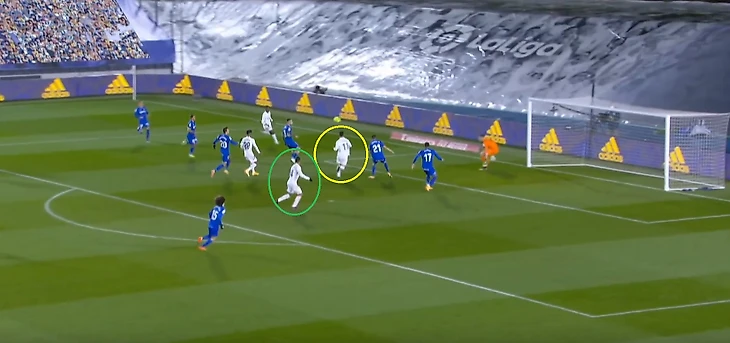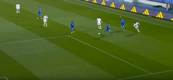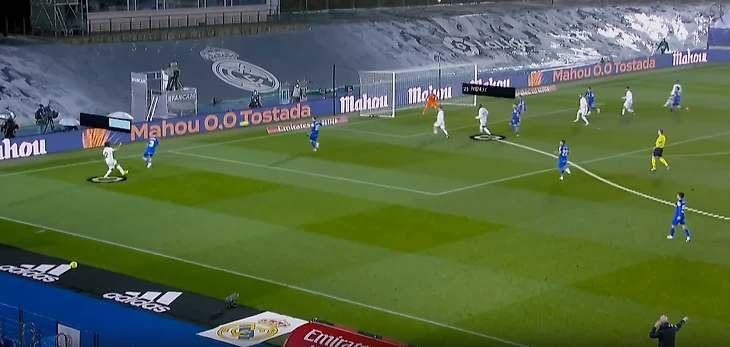 Винисиус как латераль, закрывающий всю бровку, - очень спорное решение. В атаке он намного смелее Марвина (что понятно), но в обороне может не хватить концентрации. И самый единственный опасный момент Хетафе создал именно тогда, когда Вини только стал играть по всей бровке.