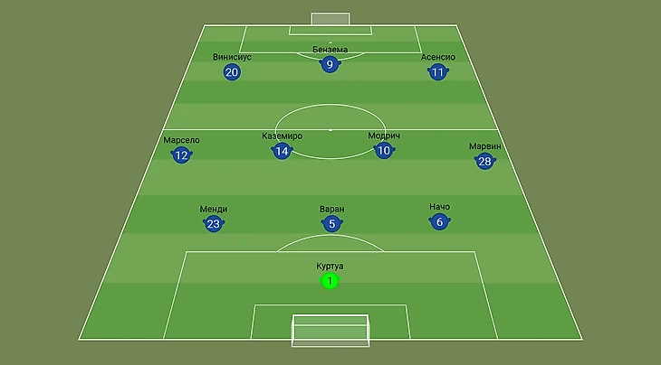 Я предлагал сыграть с 3 центральными защитниками: Чуст-Варан-Начо. Но Зидан выпустил вместо Чуста Менди и отправил на правый фланг Марвина. Если посмотреть, то это менее рискованный вариант и более продуктивный.