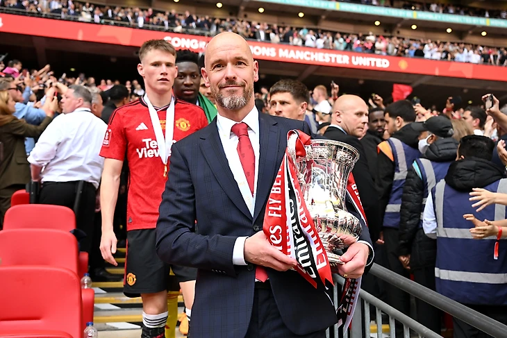 После того как в течение двух недель компания INEOS проводила анализ сезона без участия Эрика Тен Хага, подтверждение того, что он остается, означает, что теперь можно вести диалог о кампании, в ходе которой «Манчестер Юнайтед» вылетел из Лиги чемпионов на групповом этапе и скатился на восьмое место в Премьер-лиге, а затем одержал волевую победу в Кубке Англии.
