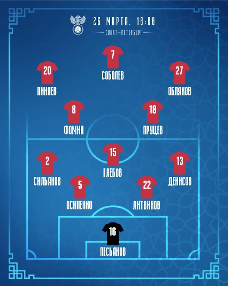 Стартовый состав не предвещал ничего хорошего: Песьяков, Пруцев, Денисов. Ничего против них не имею, но у нашей сборной были лучшие альтернативы даже на скамейке: Сафонов, Кузяев, Караваев. И если отсутствие последних двух можно объяснить усталостью, то в усталость вратаря я верю слабо. Таким составом Карпин уже дал понять, что для него важнее дать шанс молодым(Песьяков не молодой, но вы поняли), чем одержать победу над Ираком в товарищеском матче.