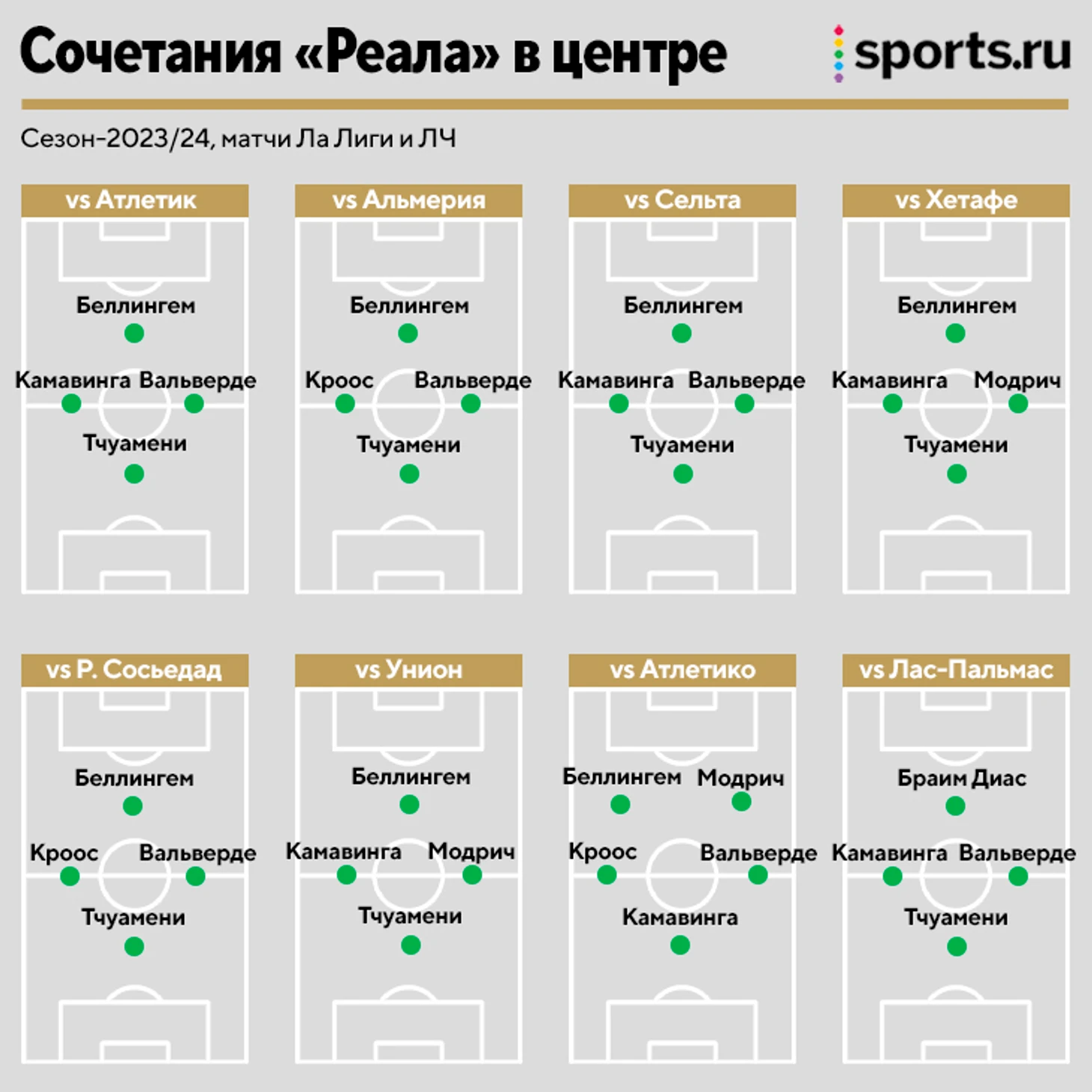 С нового сезона роли Модрича и Крооса изменились — они больше не ключевые футболисты, а новая игровая система Анчелотти (ромб 4-4-2 со ставкой на контрпрессинг) еще больше ограничивает их в возможностях, так как роль левой или правой «восьмерки» в этой системе требует гигантского объема работы по всему полю, чего Лука и Тони — два гения игры на мяче — предложить не могут.