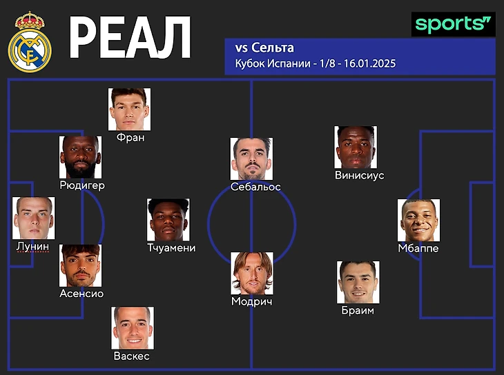 Мбаппе отдохнуть тоже (ЦФ может выйти Вини, Браим и Гюлер на флангах тогда) не мешало бы, но это Анчелотти.