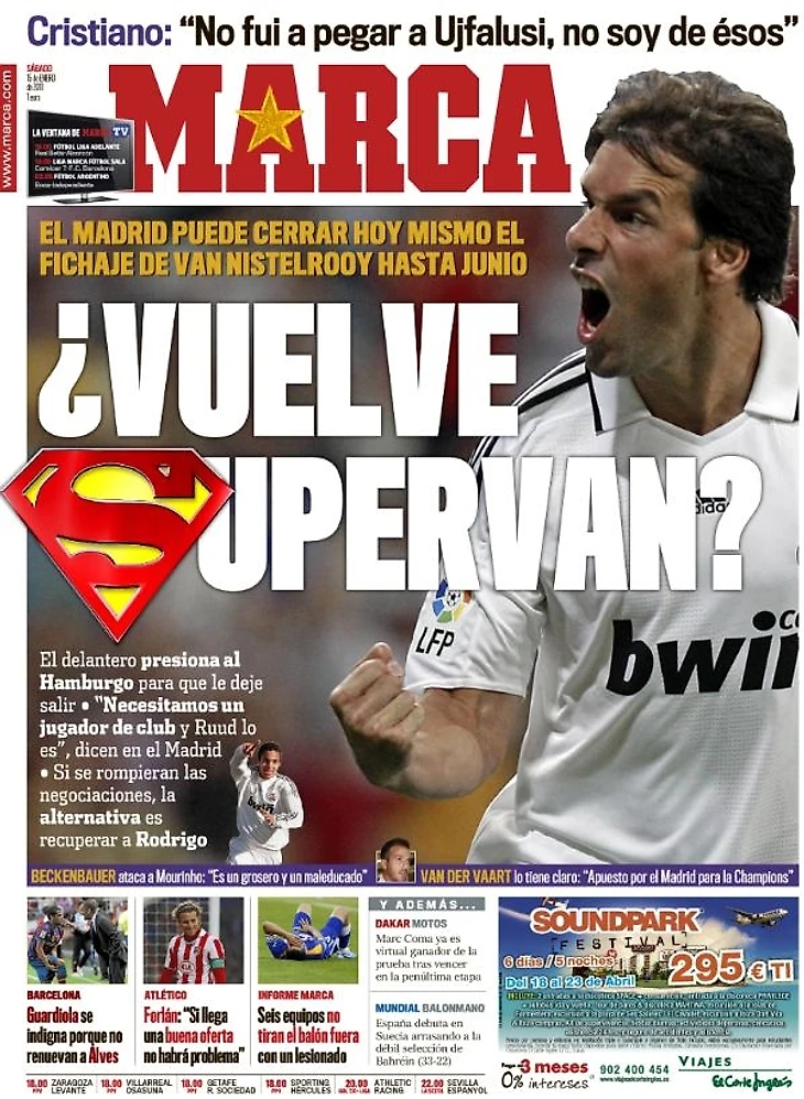 Ситуация напоминает мне январь 2011-го, когда Моуринью после травмы Игуаина требовал еще одного форварда. «Мадрид» устами Хорхе Вальдано публично отрицал возможность выхода на рынок, но ближе к середине месяца сначала провел переговоры по Ван Нистелрою (его не отпустил «Гамбург», хотя игрок публично заявил о желании вернуться), а позже договорился об аренде Адебайора из «Манчестер Сити».