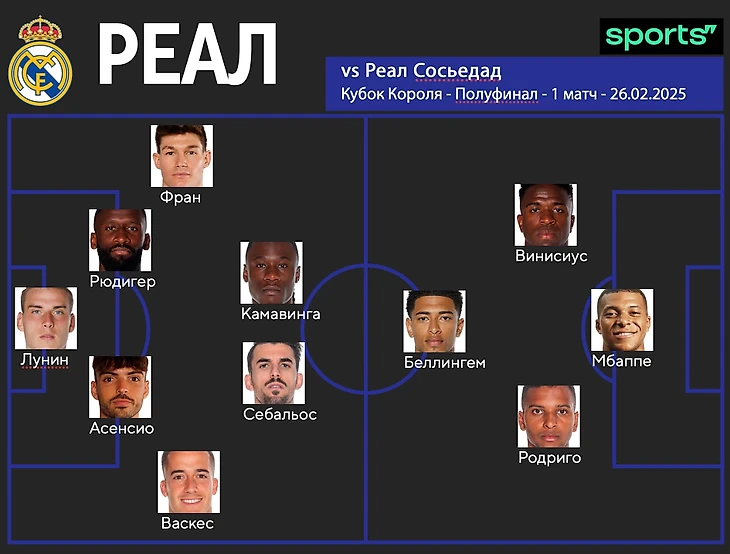 Две дополнительные интриги связаны с участием Вальверде и с вопросом левого фланга: против Кубо было бы логичнее выпустить Менди, но обычно Карло не дает французу нагрузку в 3-4 игры подряд, поскольку Ферлан подвержен травмам. Кажется, что выход Франа Гарсии в этот раз более вероятен.