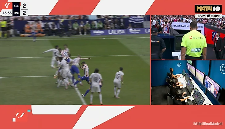 На 42-й минуте вроде как сравняли с углового, но гол не засчитали: сыграл рукой Лангле – занес мяч в ворота «Реала». Главный арбитр Хавьер Альберола Рохас справедливо все отменил после включения ВАР.